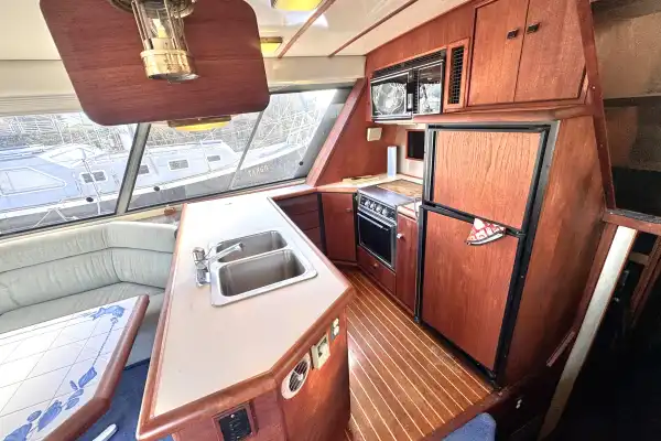 Disclaimer: Kelly Yacht Sales offers the details of this 1989 Bayliner 4588 vessel in good faith but cannot guarantee or warrant the accuracy of this information nor warrant the condition of the vessel. A buyer should instruct his agents, or his surveyors, to investigate such details as the buyer desires validated. This vessel is offered subject to prior sale, price change, or withdrawal without notice.