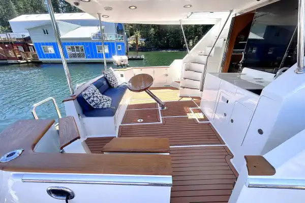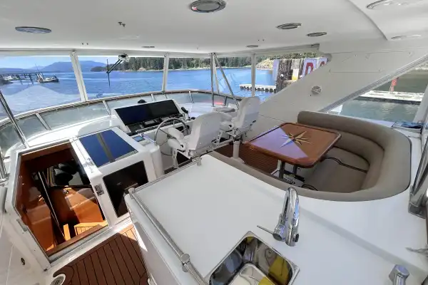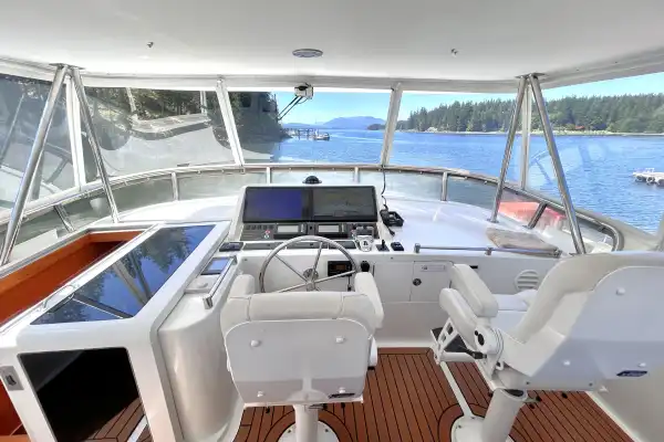 There is a reason the Ocean Alexander 64 is considered one of the best cruising boats around. The functional layout creates multiple areas for people to come together as well as have privacy. From every space, you can experience the beautiful coast through expansive windows and well-placed seating areas. No matter the weather you will be comfortable aboard this yacht.